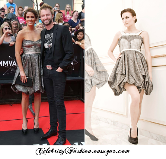 Ashley Greene participou do desfile de moda de Salvatore Ferragamo Resort 2012 na terça-feira, dia 28 de junho na cidade de Nova York. Ashley estava linda e sofisticada com um vestido de marfim e com decote em V com um cinto de Salvatore Ferragamo.